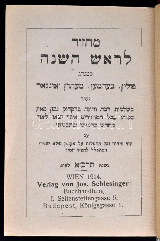 Leírás: Héber imakönyv. Wien, 1914, Schlesinger. Kiadói dombornyomott, aranyozott egészvászon kötés, aranyozott lapszélek, jó állapotban.