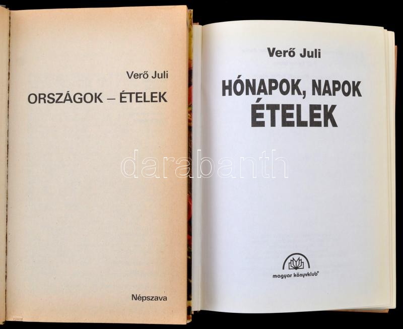 Országok-ételek. Hónapok, napok, ételek. Bp., 19... https://www.darabanth.com/hu/342-Gyorsarveres/342.0/Konyvek/Konyvek-Konyha-es-kert~1000007/Vero-Juli-ket-muve--Orszagok-etelek-Honapok-napok-etelek-Bp-1985-1996-Nepszava-Magy~II1896713