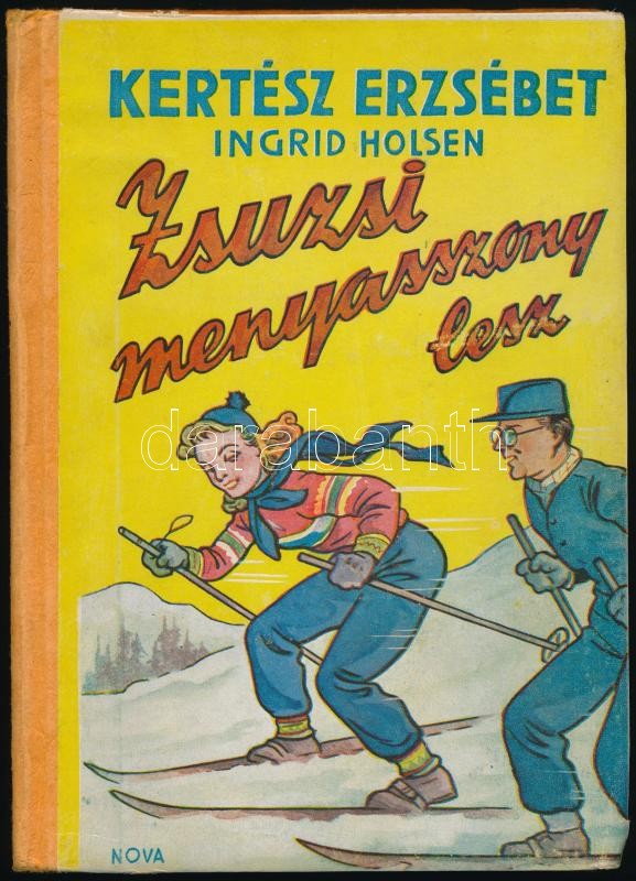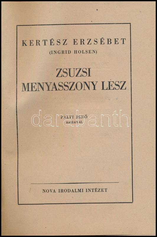Kertész Erzsébet (Ingrid Holsen): Zsuzsi menyasszony lesz. Pályi Jenő rajzaival. Bp., 1942,Nova,(Kalász-ny.), 126+2 p. Egészoldalas és szövegközti illusztrációkkal. Kiadói illusztrált félvászon-kötésben, kissé kopottas borítóval, de belül jó állapotban.
