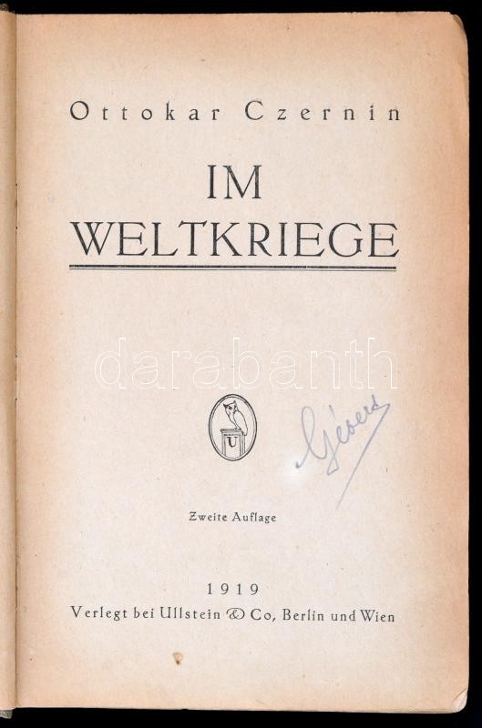 Ottokar Czernin: Im Weltkrieg. Berlin-Wien, 1919, Ullstein. Német nyel... https://www.darabanth.com/hu/342-Gyorsarveres/342.0/Konyvek/Konyvek-Militaria-Katonasag~1000005/Ottokar-Czernin-Im-Weltkrieg-Berlin-Wien-1919-Ullstein-Nemet-nyelven-Kiadoi-kopott-felvasz~II1925836