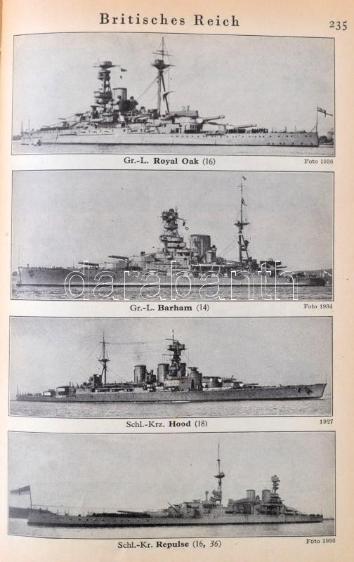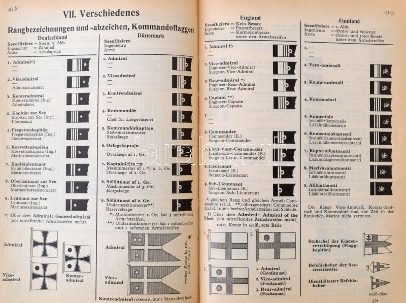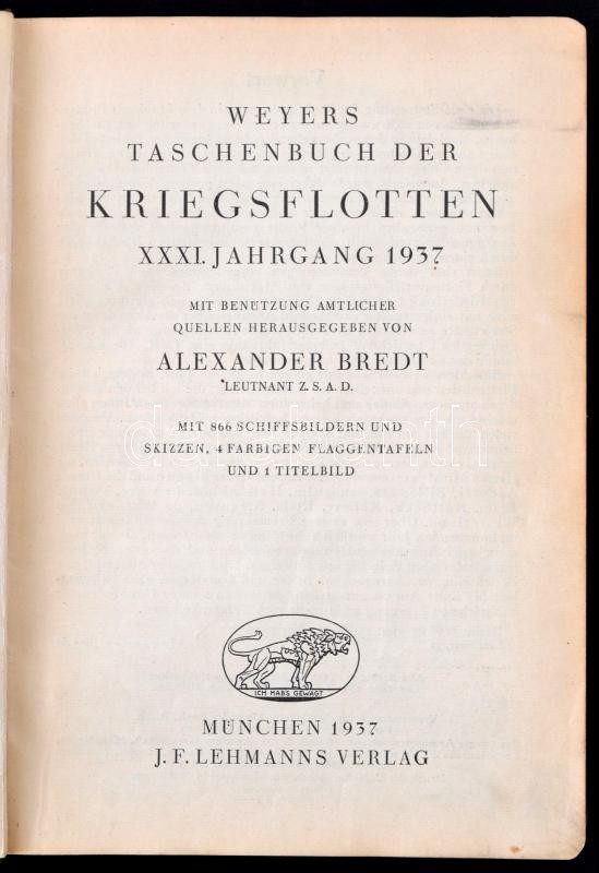 Weyers Taschenbuch der Kriegsflotten XXXI. Jahrgang 1937. Szerk.: Alexander Bredt. München, 1937, J. F. Lehmanns Verlag, LVI+462 p. Német nyelven. Számos illusztrációval, rangjelzésekkel. Kiadói aranyozott egészvászon-kötés, plusz egy térképpel.