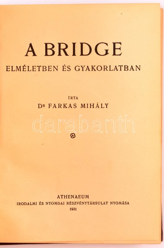 Leírás: Farkas Mihály, dr. - A Bridge elméletben és gyakorlatban. (Bp.), 1931. Athenaeum. 200 p. Kiadói egészvászon kötésben.