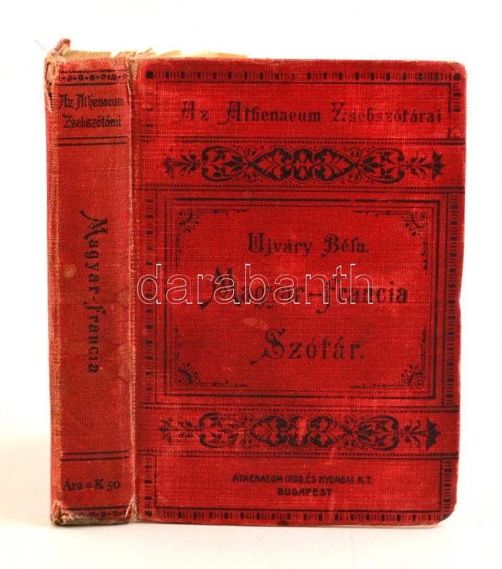 Magyar és francia zsebszótár tekintettel a két nyelv szólásaira. Szerk.: Ujváry Béla. II. Magyar-francia rész. Bp., é.n., Athenaeum. Negyedik, javított és bővített kiadás. Kiadói egészvászon-kötés, kopott borítóval, kissé sérült gerinccel.