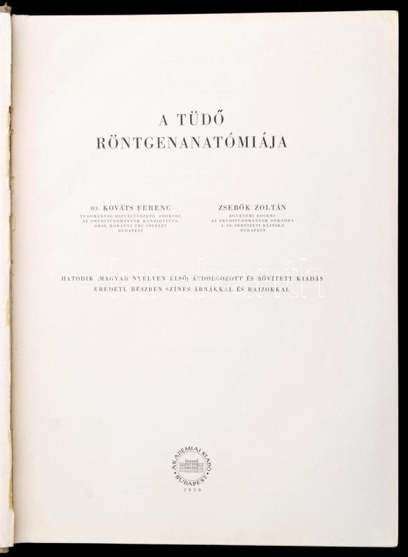 Ifj. Kováts Ferenc - Zsebők Zoltán: A tüdő röntgenanatómiája. Bp., 195... https://www.darabanth.com/hu/342-Gyorsarveres/342.0/Konyvek/Konyvek-Termeszettudomany-medicina~1000009/Ifj-Kovats-Ferenc-Zsebok-Zoltan-A-tudo-rontgenanatomiaja-Bp-1959-Akademiai-Kiado-~II1930468