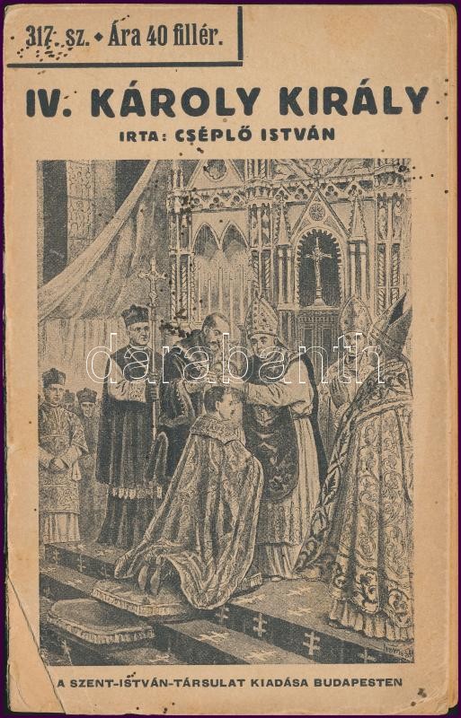Cséplő István: IV. Károly Király. Népiratkák 317. Bp.,(1917), Szent István-Társulat. Kiadói papírkötés, a borító leszakadt.