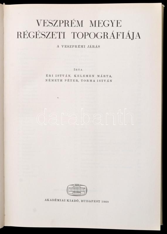 Torma István (szerk.): Magyarország régészeti topográfiája. 2. kötet. A Veszprémi járás régészeti topográfiája. Bp., 1969, Akadémiai Kiadó. Kiadói egészvászon kötésben, kiadói papír védőborítóval térképmellékletekkel.