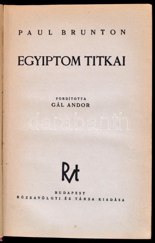 Brunton, Paul: Egyiptom titkai. Fordította: Gál Andor. Bp., é.n., Rózs... https://www.darabanth.com/hu/342-Gyorsarveres/342.0/Konyvek/Konyvek-Utazas-helytortenet~1000001/Brunton-Paul-Egyiptom-titkai-Forditotta-Gal-Andor-Bp-en-Rozsavolgyi-Kiadoi-felvas~II1911643