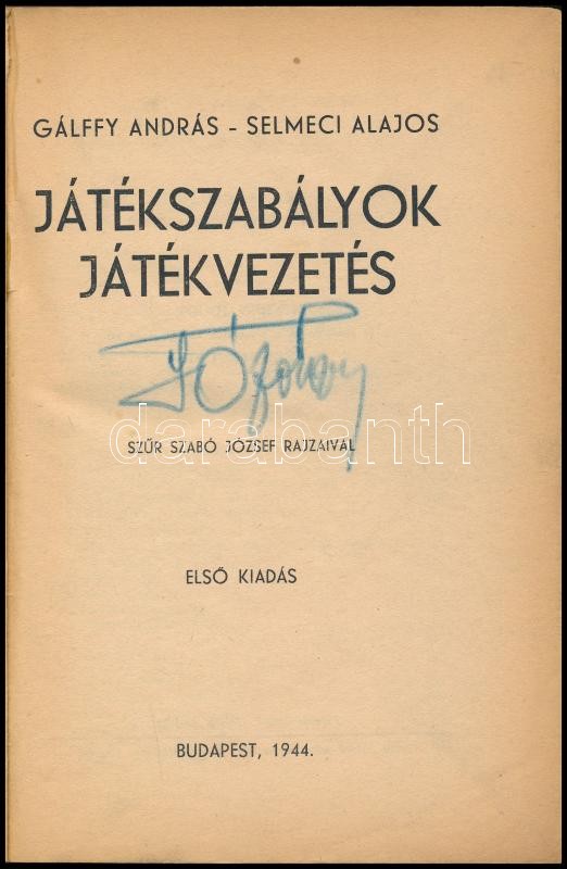 Gálffy András-Selmeci Alajos: Játékszabályok, játékvezetés. Szűr Szabó József rajzaival. Bp., 1944, kn., (Cegléd, Garab József-ny.),192 p. Első kiadás. Kiadói papírkötés, névbejegyzéssel.