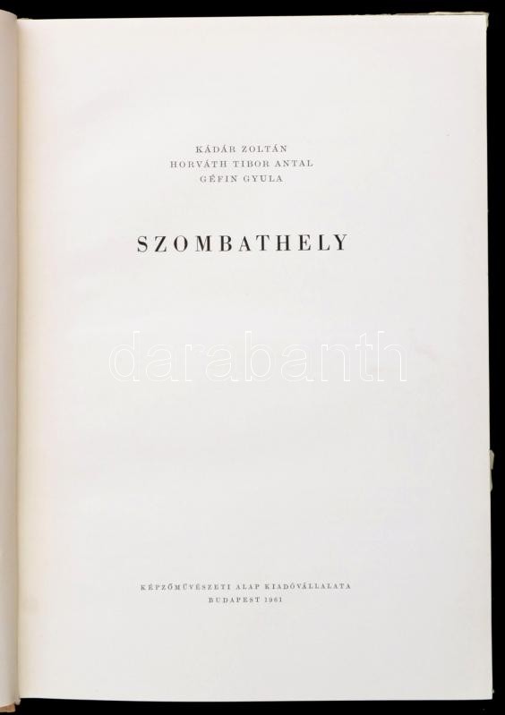 Kádár Zoltán-Horváth Tibor Antal-Géfin Gyula: Szombathely. Magyar Műem... https://www.darabanth.com/hu/342-Gyorsarveres/342.0/Konyvek/Konyvek-Utazas-helytortenet~1000001/Kadar-Zoltan-Horvath-Tibor-Antal-Gefin-Gyula-Szombathely-Magyar-Muemlekek-Bp-1961-Kepz~II1928958