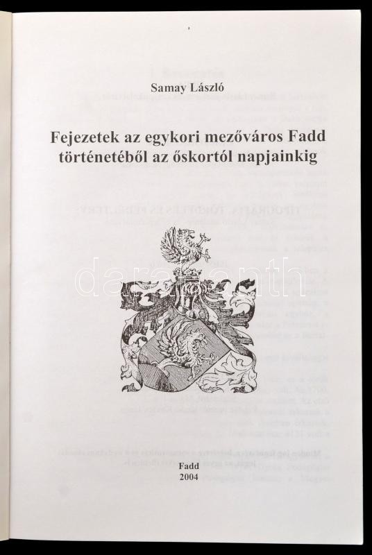 Samay László: Fejezetek az egykori mezőváros Fadd történetéből az ősko... https://www.darabanth.com/hu/342-Gyorsarveres/342.0/Konyvek/Konyvek-Utazas-helytortenet~1000001/Samay-Laszlo-Fejezetek-az-egykori-mezovaros-Fadd-tortenetebol-az-oskortol-napjainkig-Fad~II1928035