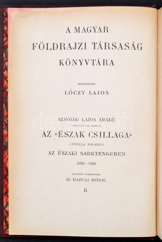 Szavójai Lajos Amádé: Az "Észak csillaga". Az Északi sarkitengeren 1899-1900. II. kötet. Fordította: Dr. Darvai Móric. Magyar Földrajzi Társaság Könyvtára. Bp.,é.n., Franklin. Fekete-fehér fotókkal, térképekkel illusztrálva. Kiadói aranyozott egészvászon sorozatkötésben, kopott borítóval.