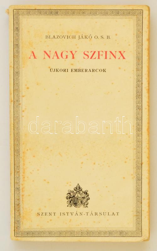 Blazovich Jákó: A nagy Szfinx. Újkori emberarcok. Bp.,1936, Szent Istv... https://www.darabanth.com/hu/342-Gyorsarveres/342.0/Konyvek/Konyvek-Vallas~1000014/Blazovich-Jako-A-nagy-Szfinx-Ujkori-emberarcok-Bp-1936-Szent-Istvan-Tarsulat-Kiadoi-papC3~II1733161