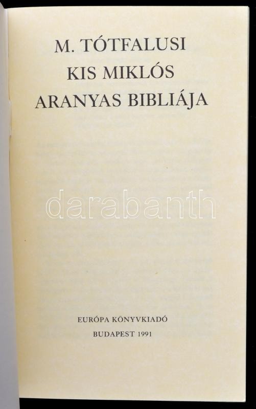 Tarnóc Márton-Haiman György: M. Tótfalusi Kis Miklós aranyas bibliája. Bp.,1991, Európa. Kiadói egészműbőr-kötésben, aranyozott lapélekkel, kiadói papírdobozban,tanulmányfüzettel. Szép állapotban.