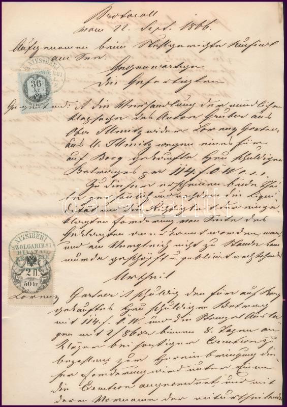 Leírás: 1866 2Fl50kr +36 kr illetékbélyeg nezsideri okmányon
