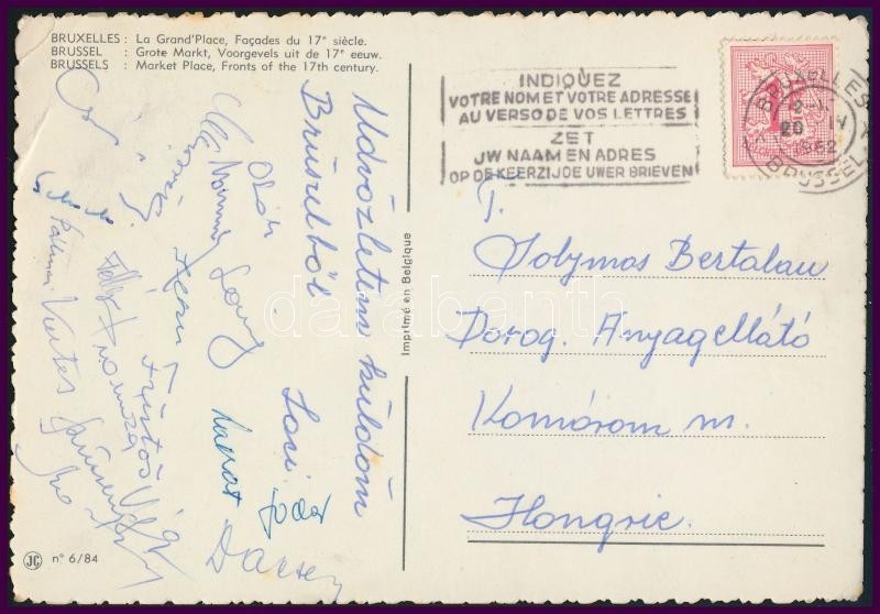 Leírás: 1962 a Dorogi Bányászok aláírásai levelezőlapon (Oláh, Láng, Lakat, stb.)