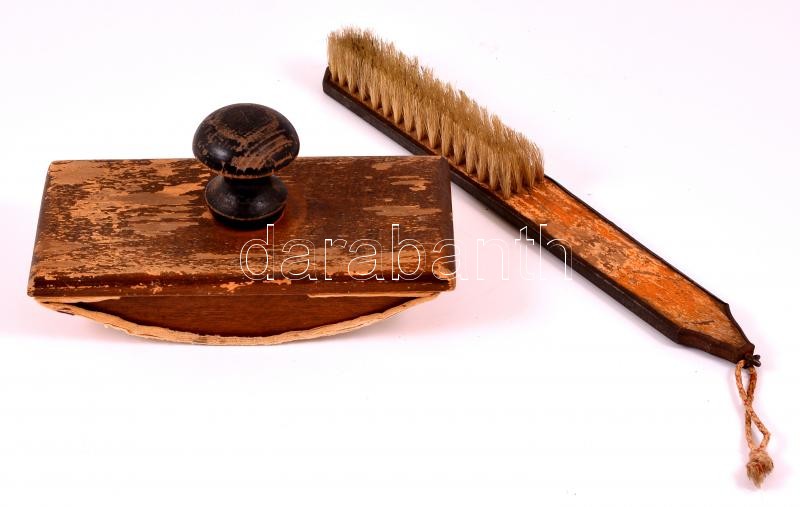 Leírás: Régi fa tapper és morzsakefe, kopottas állapotban, 2 db