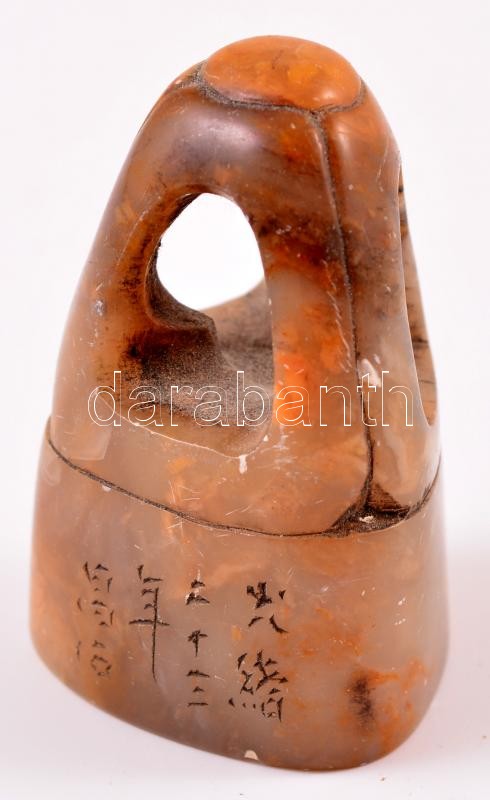 Leírás: Díszített, régi kínai kő pecsétnyomó. Felakasztható / Antique Chinese seal maker 5 cm