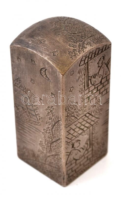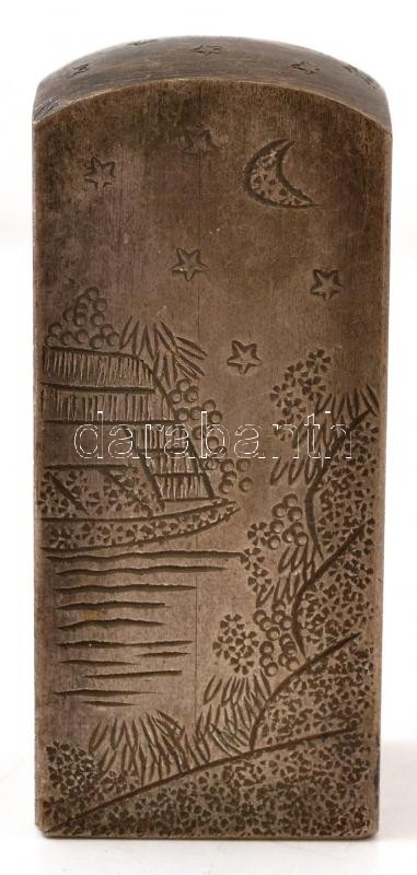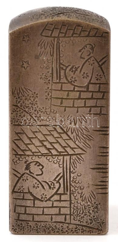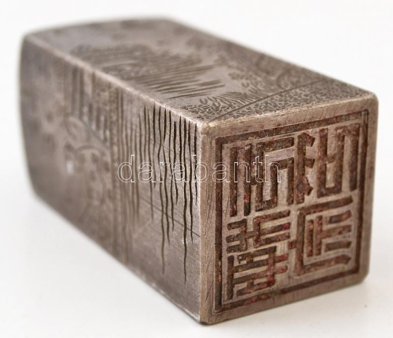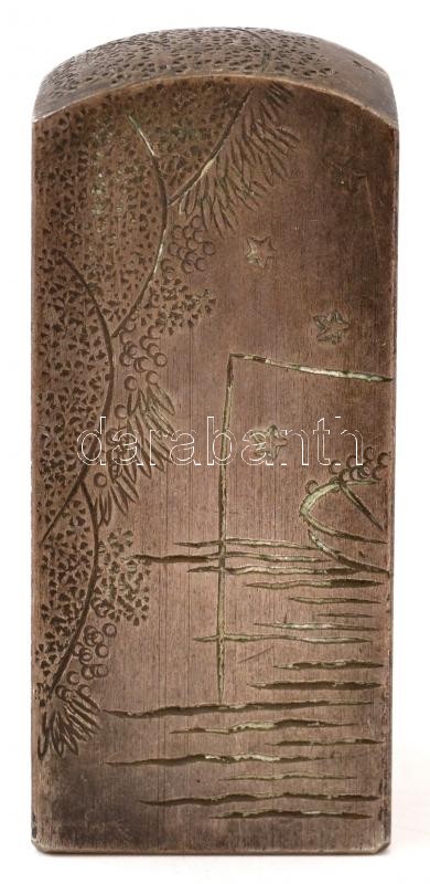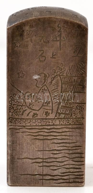 Leírás: Hajós jelenetet ábrázoló, régi kínai acél pecsétnyomó, gazdagon díszített / Antique steel Chinese seal maker with rich ornaments 7 cm