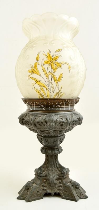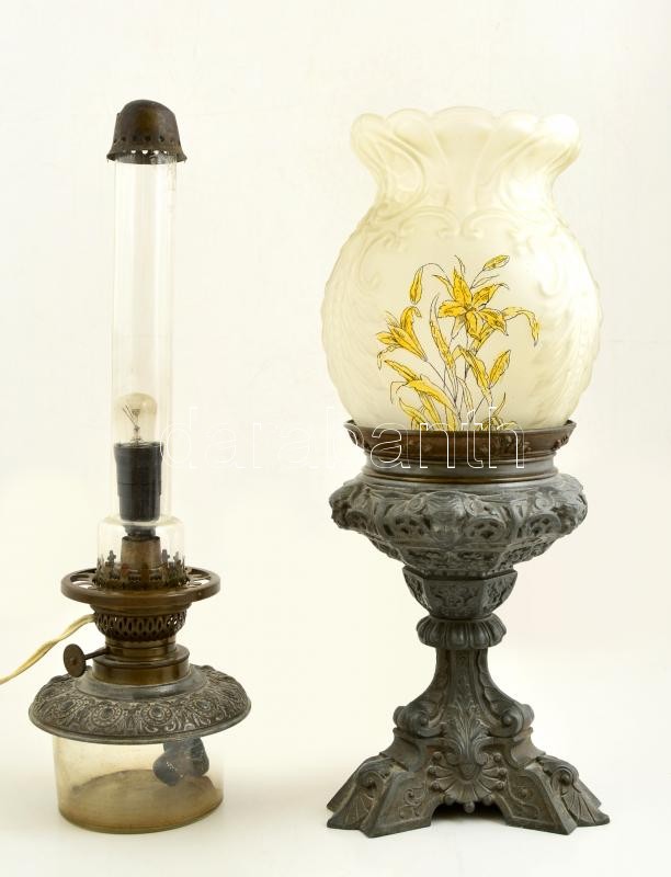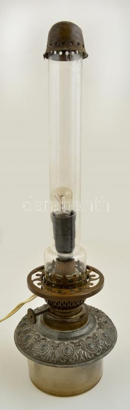 Leírás: M&B Wiener Rundbrenner átalakított petróleumlámpa, nem kiprobált, spiáter test, üveg burán apró csorba, m:60 cm