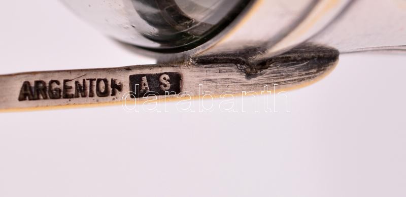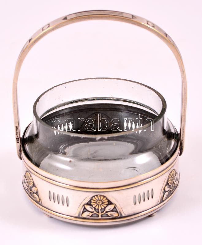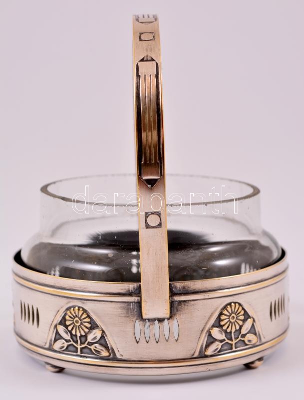 Leírás: Szecessziós Argentor kínáló kosárka, üvegbetéten apró csorbákkal, m: 12,5 cm