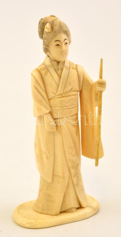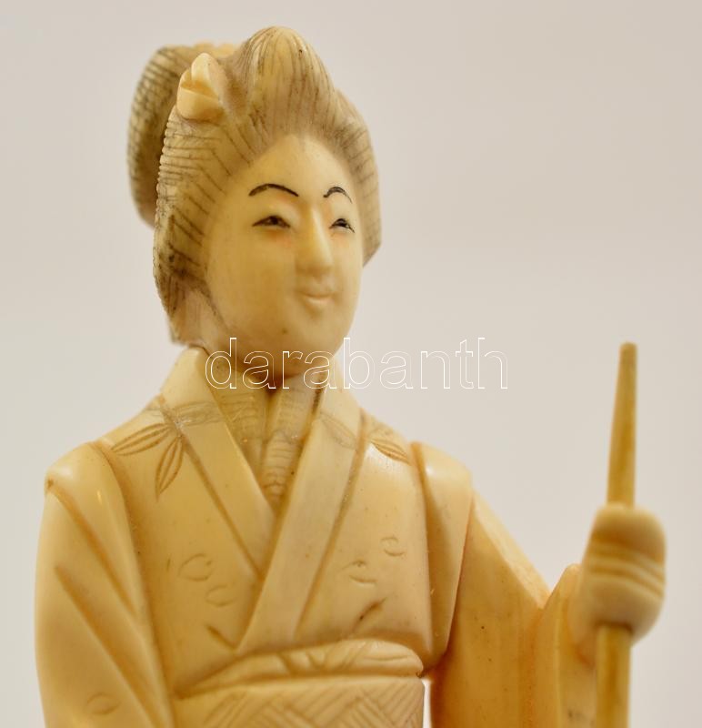 Leírás: XX.sz.e gésa, festett szemekkel, elefántcsont, jelzés nélkül, m: 10,5 cm