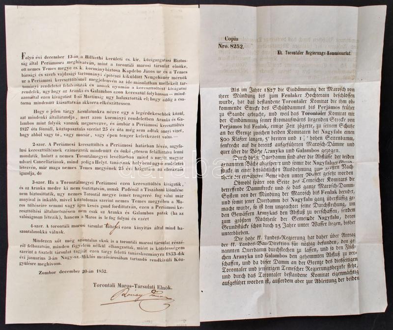1852 a Torontáli Maros Társulat 2 db nyomtatott meghívója folyószabály... https://www.darabanth.com/hu/342-Gyorsarveres/342.0/Mutargy-papirregiseg-egyeb/Okmanyok~500018/1852-a-Torontali-Maros-Tarsulat-2-db-nyomtatott-meghivoja-folyoszabalyozassal-kapcsolatos-ko~II1925794