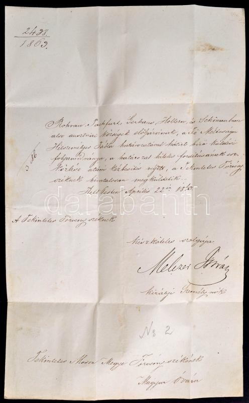 1863 Melczer István 81810-1896) királyi személynök kézzel írt levele M... https://www.darabanth.com/hu/342-Gyorsarveres/342.0/Mutargy-papirregiseg-egyeb/Okmanyok~500018/1863-Melczer-Istvan-81810-1896-kiralyi-szemelynok-kezzel-irt-levele-Moson-megye-torvenysze~II1925791