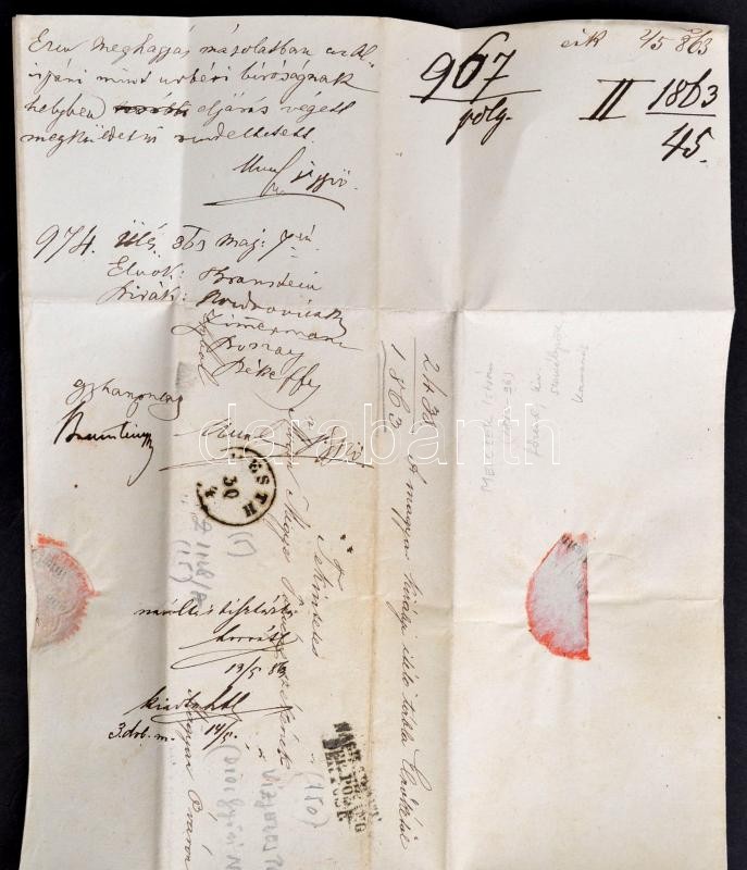 Leírás: 1863 Melczer István 81810-1896) királyi személynök kézzel írt levele Moson megye törvényszékének hivatali ügyben, magyar nyelven
