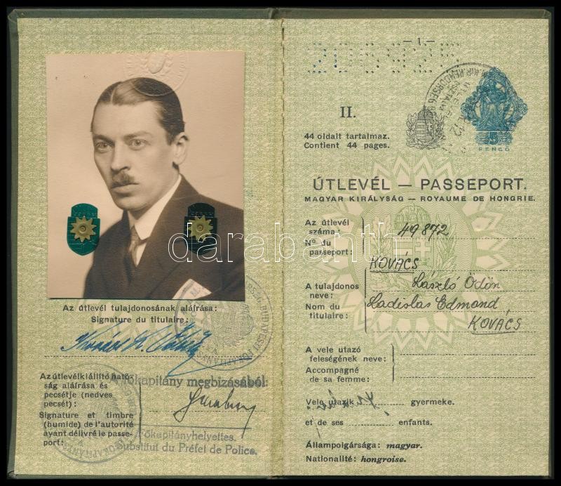 1938 Fényképes magyar útlevél gépészmérnök részére, német bejegyzésekk... https://www.darabanth.com/hu/342-Gyorsarveres/342.0/Mutargy-papirregiseg-egyeb/Okmanyok~500018/1938-Fenykepes-magyar-utlevel-gepeszmernok-reszere-nemet-bejegyzesekkel~II1925504