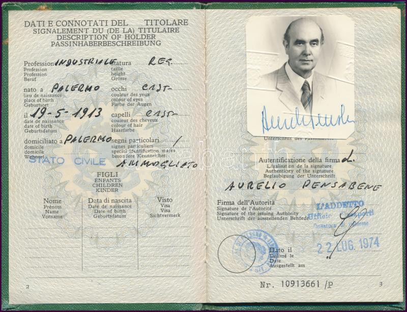 1974 Fényképes olasz útlevél, megújítással, illetékbélyeggel https://www.darabanth.com/hu/342-Gyorsarveres/342.0/Mutargy-papirregiseg-egyeb/Okmanyok~500018/1974-Fenykepes-olasz-utlevel-megujitassal-illetekbelyeggel~II1925497