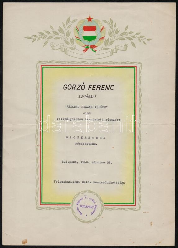 Leírás: cca 1884-1960 7 db fotózással kapcsolatos okmány és egyéb papír