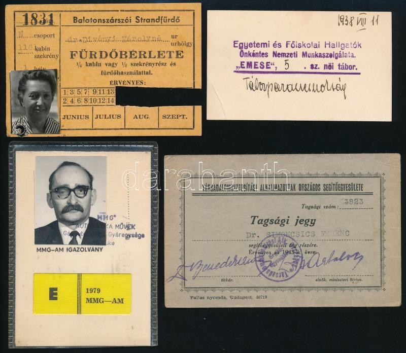 Leírás: cca 1938-1979 6 db különféle igazolvány