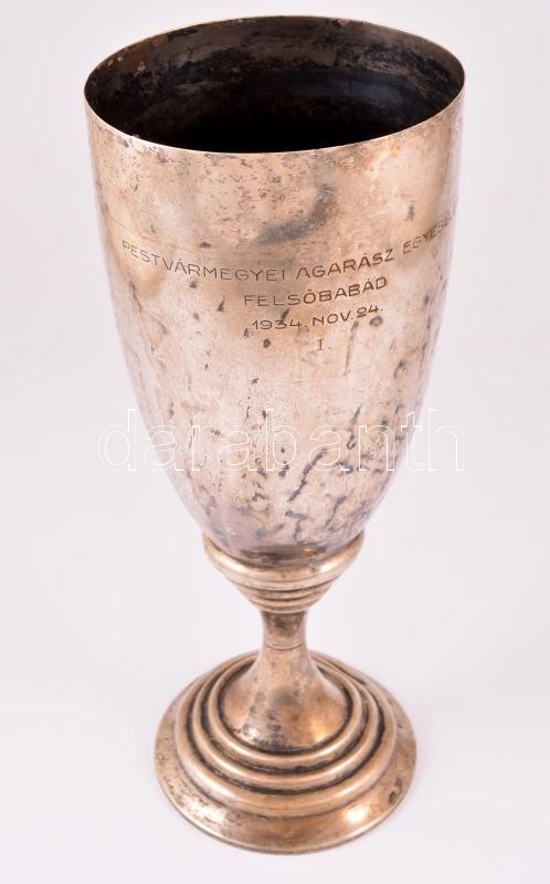 1934 Pestvármegyei Agarász Egyesület ezüst kupa, horpadással 34 cm 680... https://www.darabanth.com/hu/342-Gyorsarveres/342.0/Nemesfem-Disztargyak-Orak-es-Ekszerek/Nemesfem-Disztargyak-Orak-es-Ekszerek~500032/1934-Pestvarmegyei-Agarasz-Egyesulet-ezust-kupa-horpadassal-34-cm-680-g~II1929241