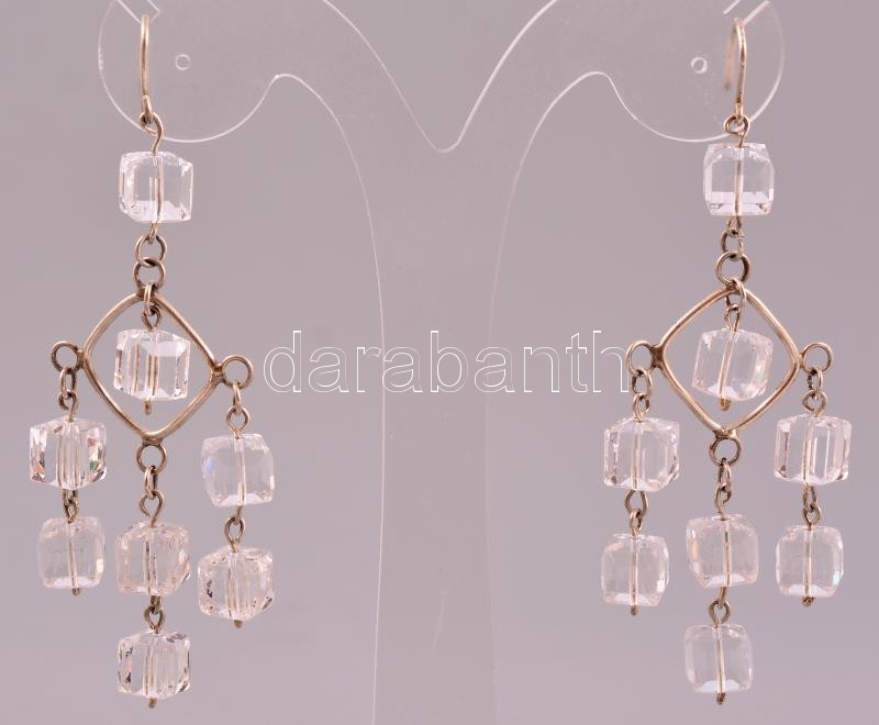 Leírás: Ezüst (Ag.) fülbevaló pár, csiszolt kristályüveggel, jelzés nélkül, bruttó: 24,1 g