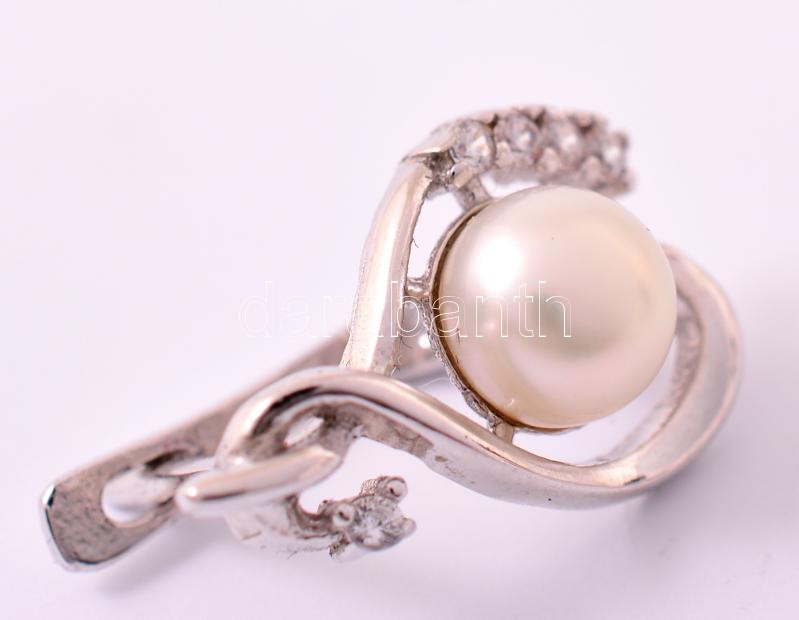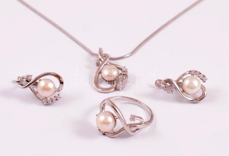 Leírás: Ezüst (Ag.) szett tenyésztett gyönggyel, cirkón kövekkel, jelzett, bruttó: 13 g