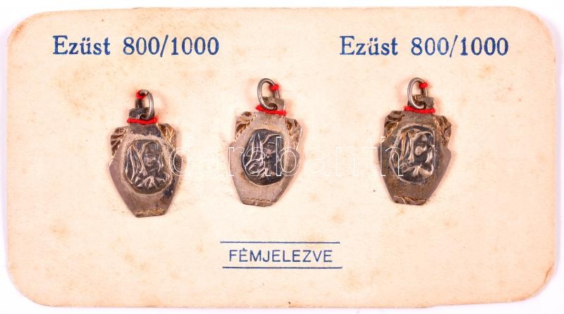 Leírás: Ezüst(Ag) Mária medál, 3 db, jelzett, 1,5x1 cm, papírlapra rögzítve