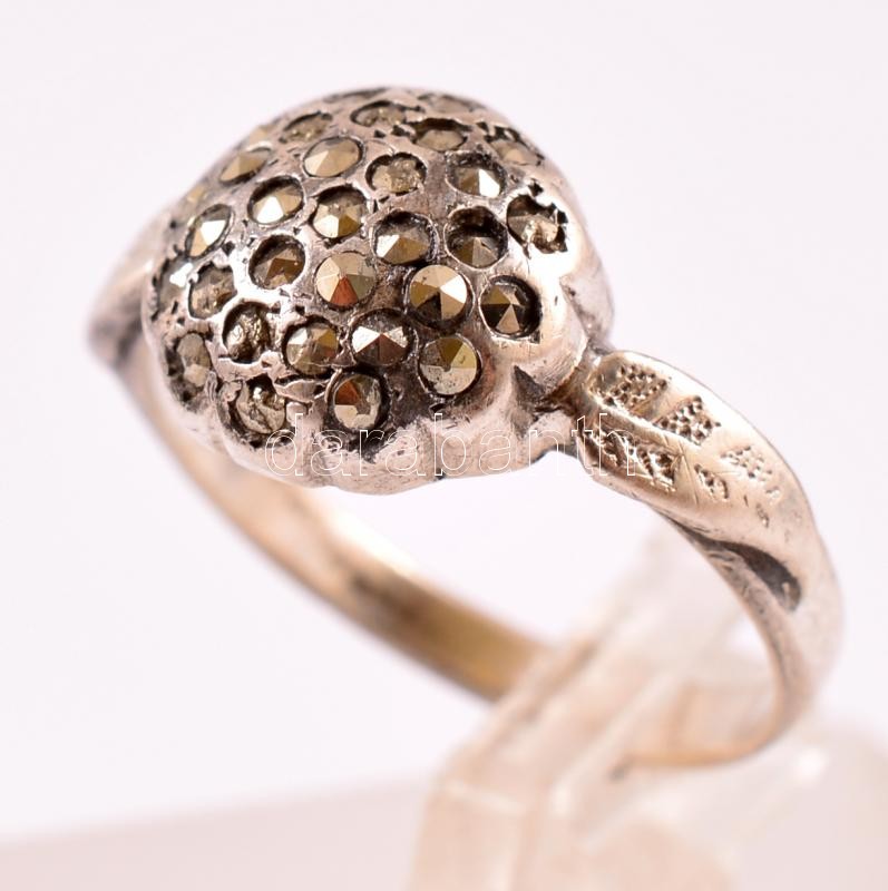 Leírás: Ezüst(Ag) gyűrű markazit díszítéssel, jelzés nélkül, méret: 51, bruttó: 2,6 g