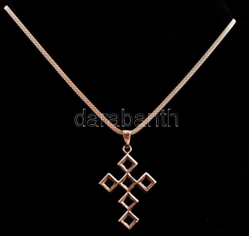 Leírás: Ezüst(Ag) kígyó nyaklánc, áttört kereszt függővel (valószínűleg a kövek hiányoznak belőle), jelzett, h: 42 cm, 5,4×3,2 cm, nettó: 13,1 g