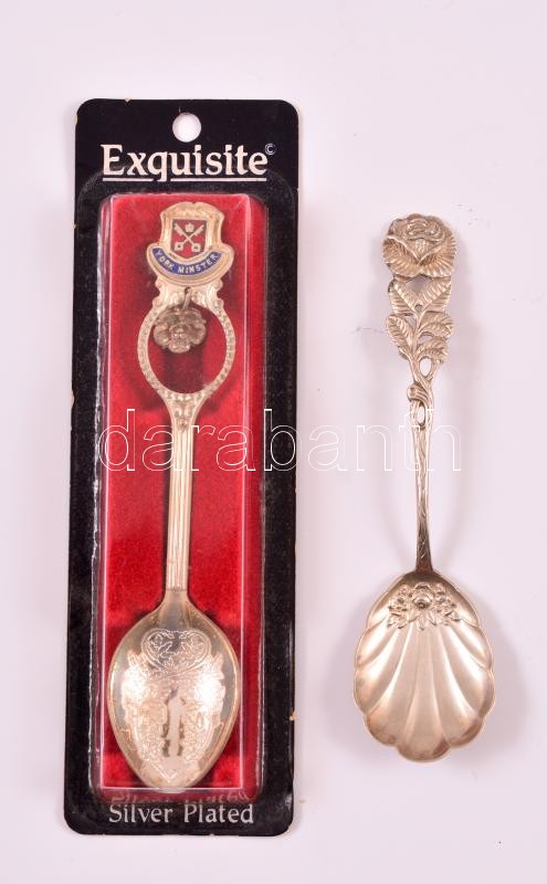 Leírás: Ezüst(Ag) rózsás kiskanál, jelzett, h: 11 cm, nettó: 12,9 g + 1 db ezüstözött díszkanál