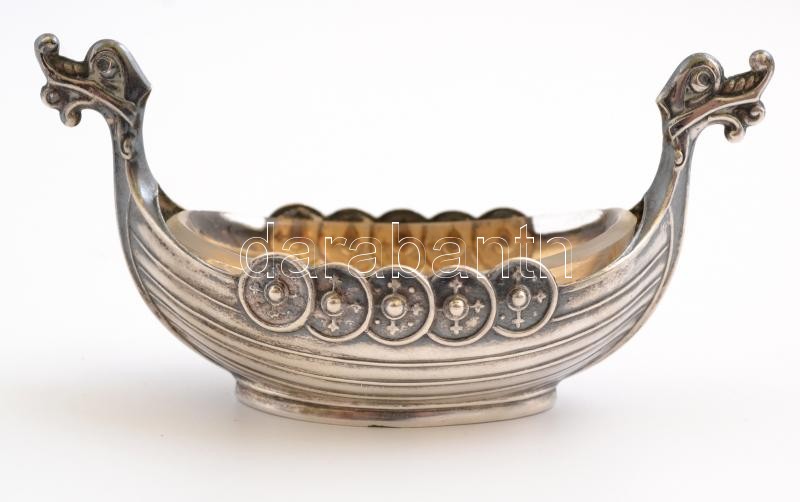 Leírás: Ezüst(Ag) vikinghajó, üveg betéttel, jelzett, 8×4 cm, nettó: 12,8 g