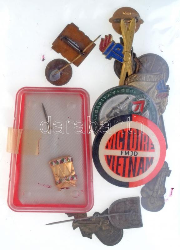 Leírás: Vegyes 13db-os jelvény és kitűző tétel, közte "Kisdobos" T:2
