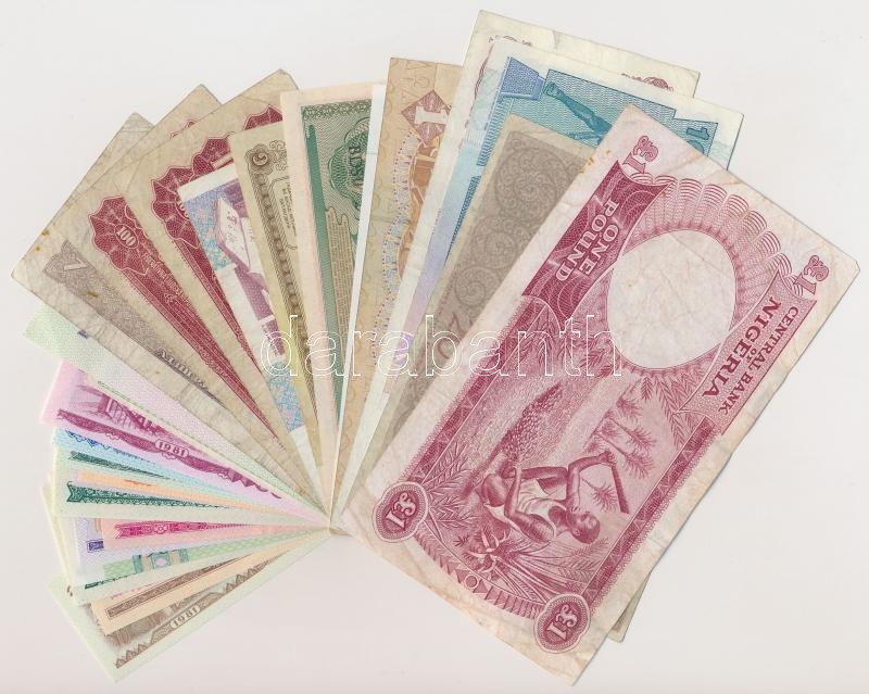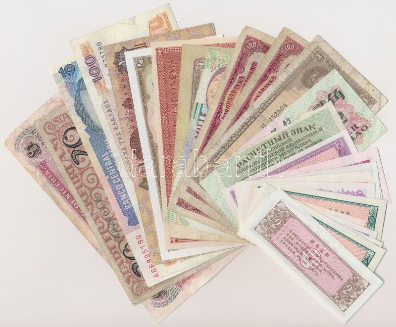 30db-os vegyes bankjegy tétel a világ minden tájáról, közte kínai ételjegyek is T:I-III-