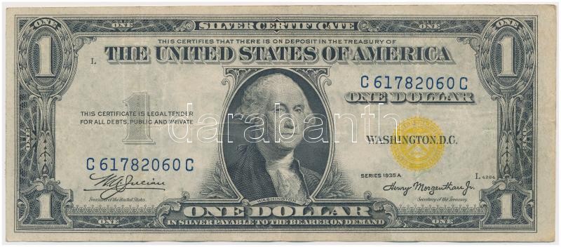 Amerikai Egyesült Államok 1934-1945. (1935A) 1$ "Silver Certificate - kisméretű" sárga pecsét, "William Alexander Julian - Henry Morgenthau Jr." T:III