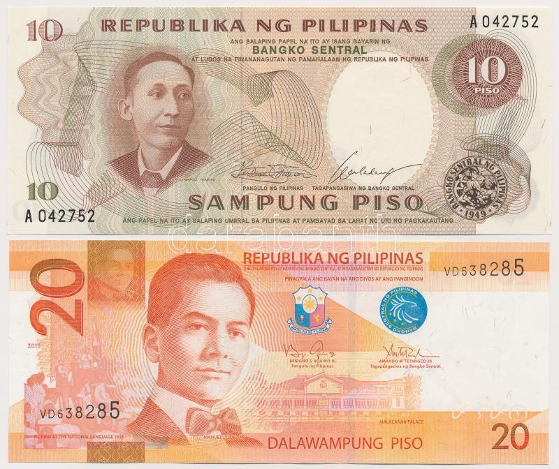 Philippines 1969. 10 Piso + ... https://www.darabanth.com/hu/342-Gyorsarveres/342.0/Numizmatika/Kulfoldi-bankjegyek~1500012/Fulop-szigetek-1969-10P-plus-2013-20P-TI-Philippines-1969-10-Piso-plus-2013-20-Piso-CUNC~II1883626