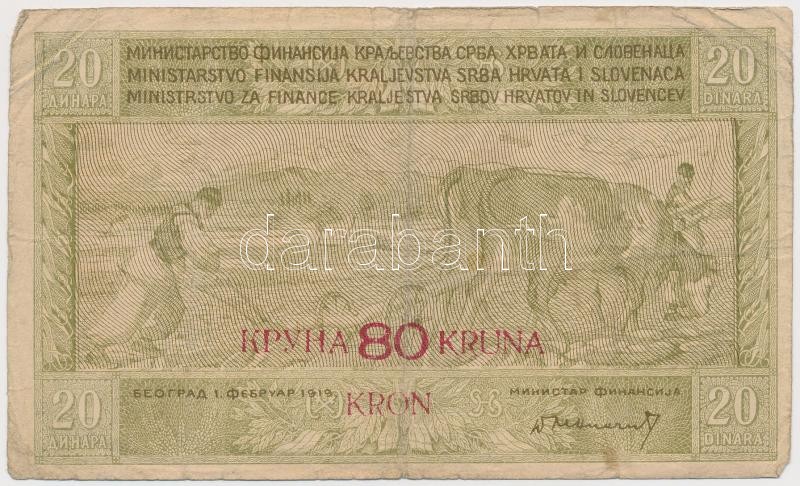 Kingdom of the Serbs, Croats and Slovenes 1919. 20 Dinara with "80 Kruna" overprint C:F