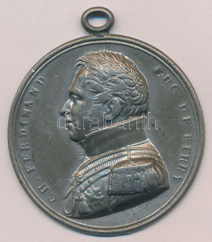 Franciaország ~1820. "Károly Ferdinánd, Berry hercege" fém emlékérem füllel (40mm) T:2- hajlott