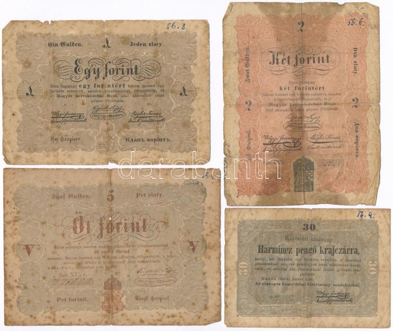 1848. 1Ft + 1848. 2Ft + 1848. 5Ft + 1849. 30kr T:III- fo., szakadás https://www.darabanth.com/hu/342-Gyorsarveres/342.0/Numizmatika/Magyar-bankjegyek~1500007/1848-1Ft-plus-1848-2Ft-plus-1848-5Ft-plus-1849-30kr-TIII-fo-szakadas~II1928033