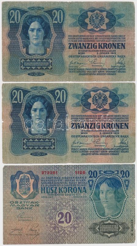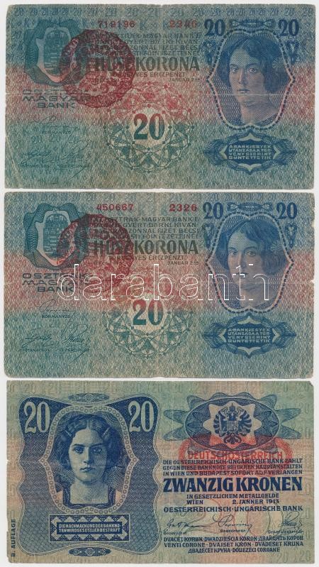 1913. 20K (3x) közte 2db piros "MAGYARORSZÁG" körbélyegzővel... https://www.darabanth.com/hu/342-Gyorsarveres/342.0/Numizmatika/Magyar-bankjegyek~1500007/1913-20K-3x-kozte-2db-piros-MAGYARORSZAG-korbelyegzovel-es-1db-Deutschosterreich-felu~II1928867