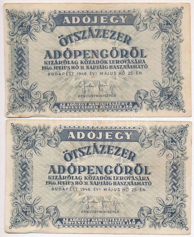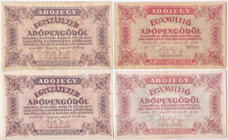 Leírás: 1946. 100.000AP (2x) + 1.000.000AP (3x) közte fordított címeres + 500.000AP (5x) T:III,III-