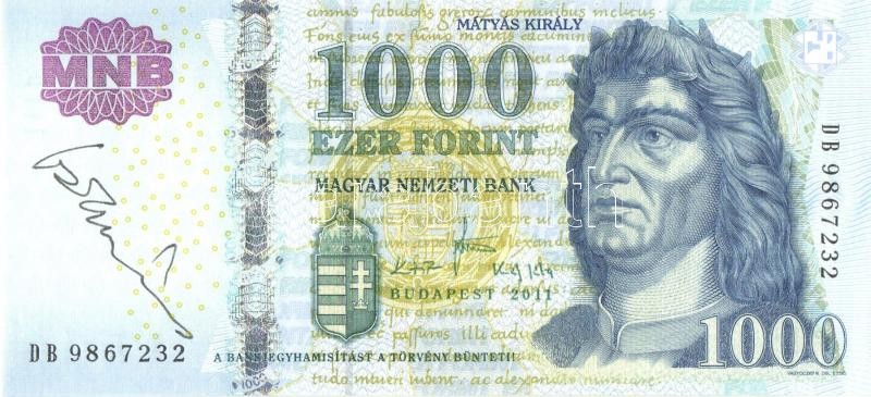 Leírás: 2011. 1000Ft "DB" a tervező, Vagyóczky Károly aláírásával T:I